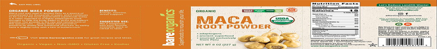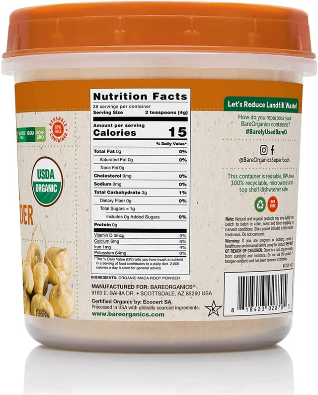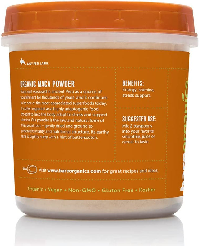 Bareorganics Maca Root Powder | Organic, Vegan, Non-Gmo, Gluten-Free | Energy & Stamina Support, 8Oz