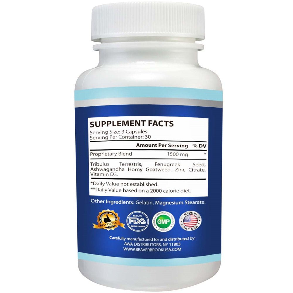 Beaver Brook Testosterone Booster 1,500Mg Dietary Supplement, All Natural, Non-Gmo - 90 Capsules - 90 is backordered and will ship as soon as it is back in stock.