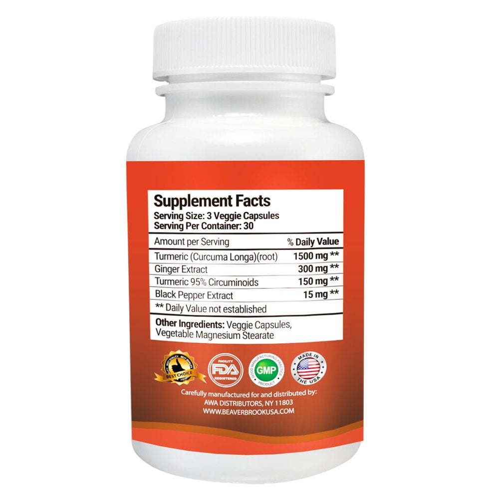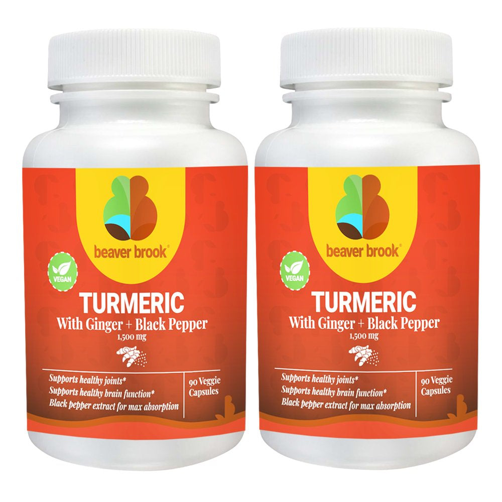 Beaver Brook Turmeric Curcumin, Ginger Root & Black Pepper Extract 1500Mg Supports Healthy Bones, All Natural, Nongmo & Gluten Free - 180 Capsules, 2 Months Supply