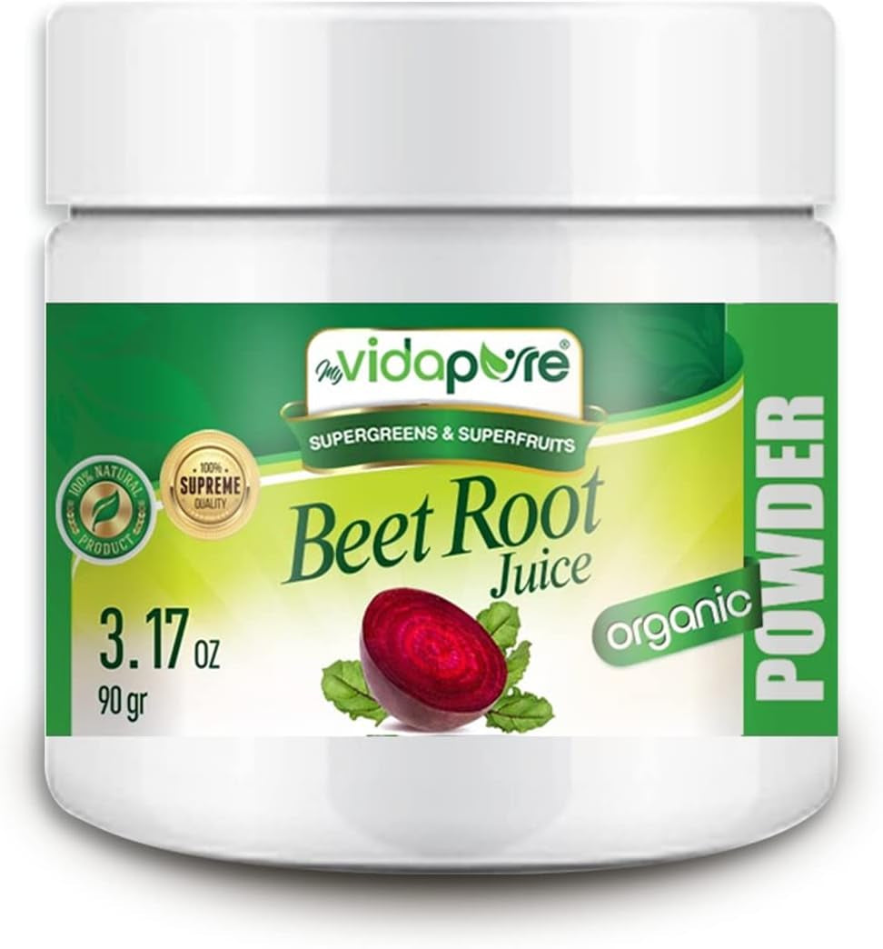 Beet Root Juice Powder Organic Freeze-Dried, Pure Natural RAW Gluten-Free, Non-Gmo. Natural Booster, Superfood Powder for Smoothie, Beverages. 3.17 Oz – 90 Gr. by Myvidapure is backordered and will ship as soon as it is back in stock.
