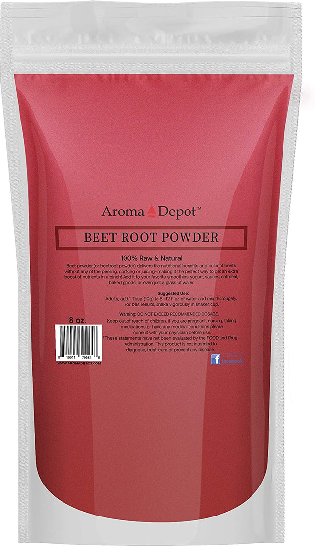 Beet Root Powder 8 Oz. by Aroma Depot Raw & Non-Gmo I Vegan & Gluten Free I Nitric Oxide Booster I Boost Stamina and Increases Energy I Immune System Booster I 100% Natural