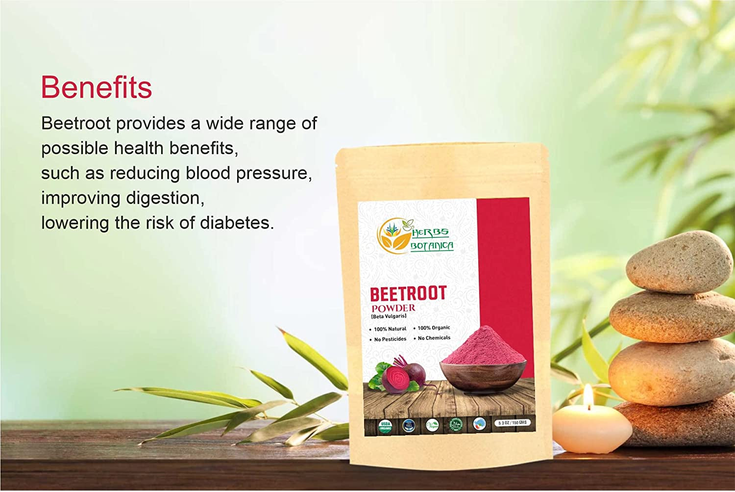 - ✅ Organic Beetroot Powder: Made from organically grown beetroots for pure, high-quality powder.