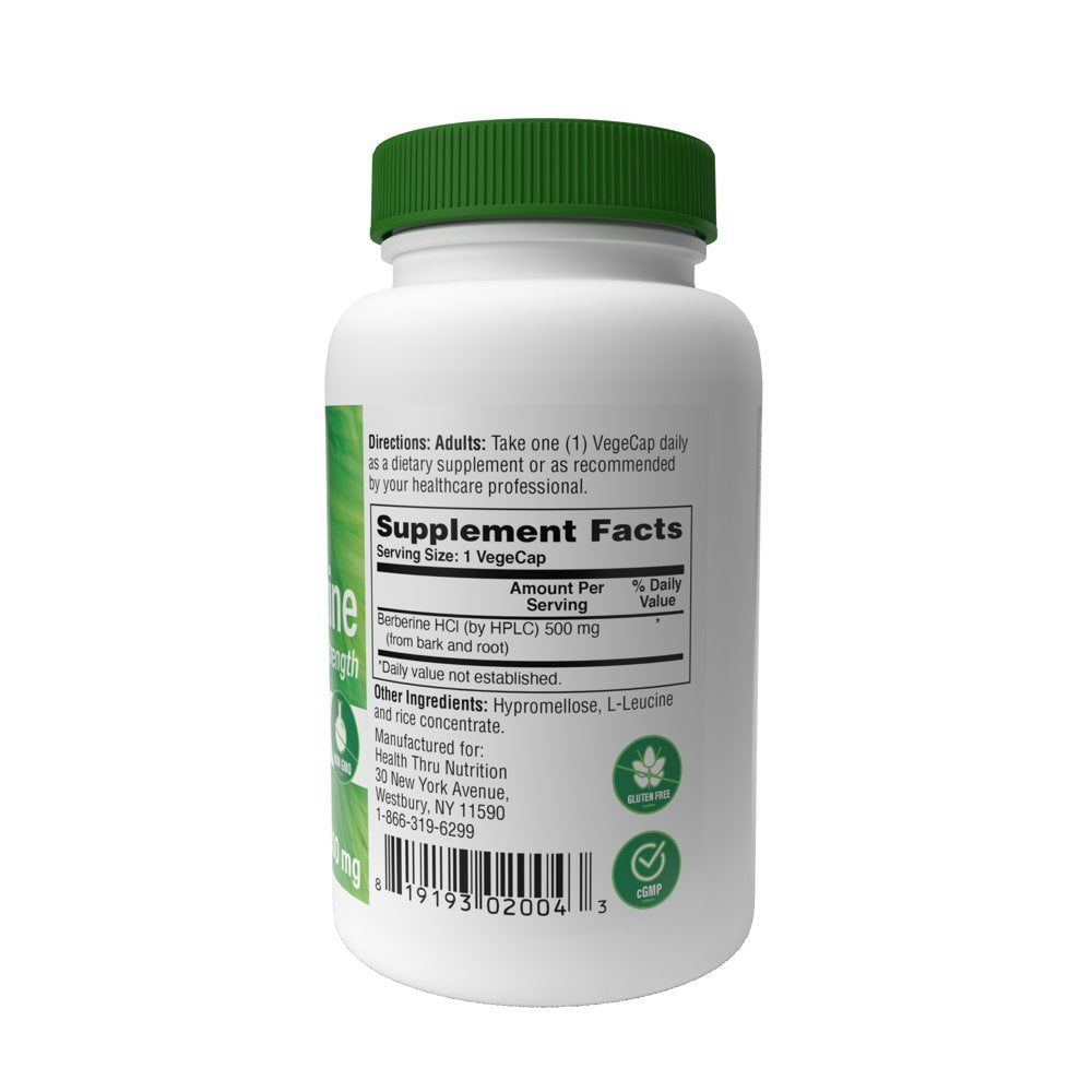 Berberine Hcl 500Mg Vegan Certified | Clinical Strength - 60 Vegecaps | Blood Sugar Support | 3Rd Party Tested | All Plant Extract | Non-Gmo, Gluten Free, Soy Free | by Health Thru Nutrition