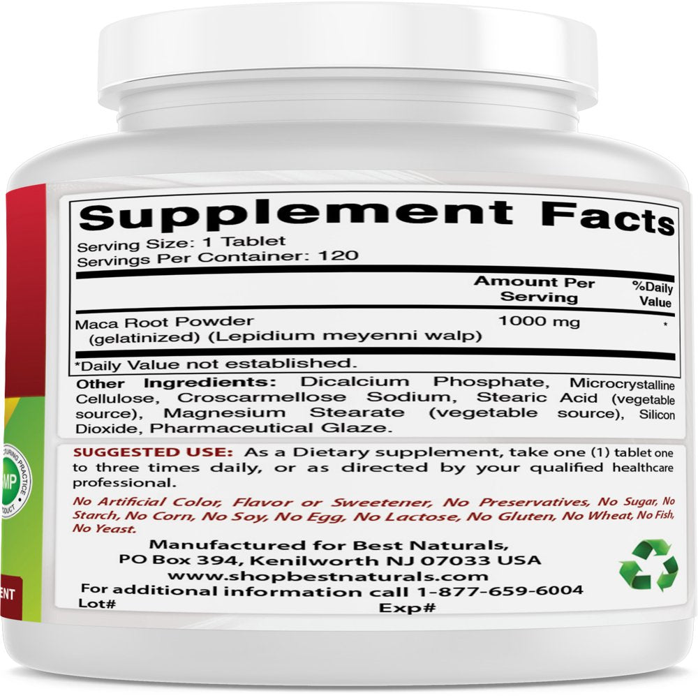 Best Naturals Gelatinized Maca 1000Mg per Tablet (Non-Gmo), Supports Reproductive Health, Mood, Hormonal Balance, Cardiovascular Health & Immune Health*, 120 Count
