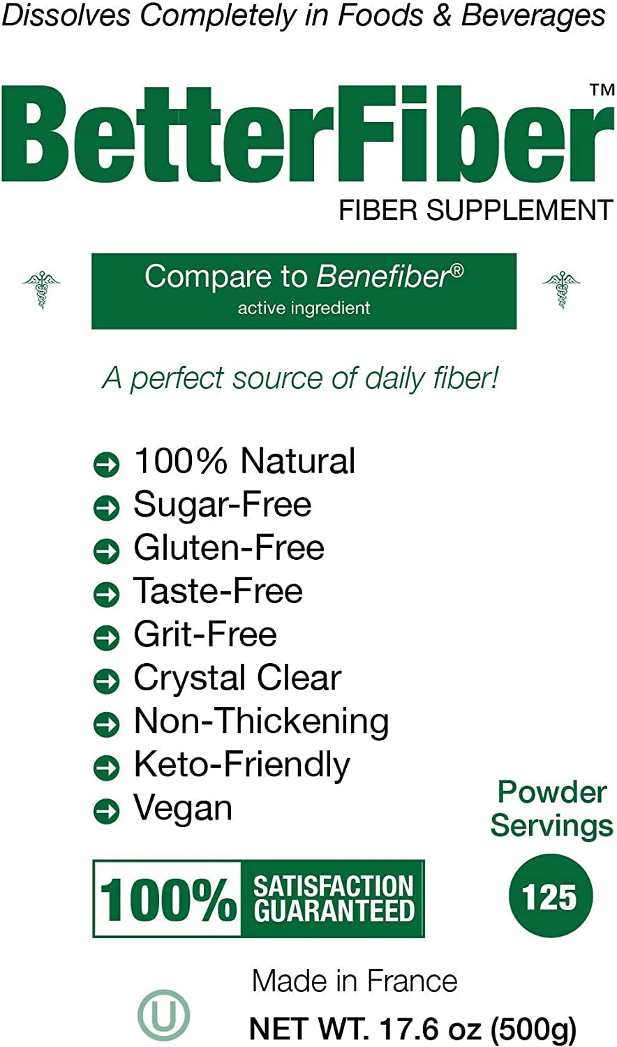 Betterfiber - Prebiotic Fiber Supplement [100% Generic Equivalent of Leading Brand] ⊘ Non-Gmo Gluten-Free Vegan OU Kosher Certified - 17.6Oz/500G (125 Servings)