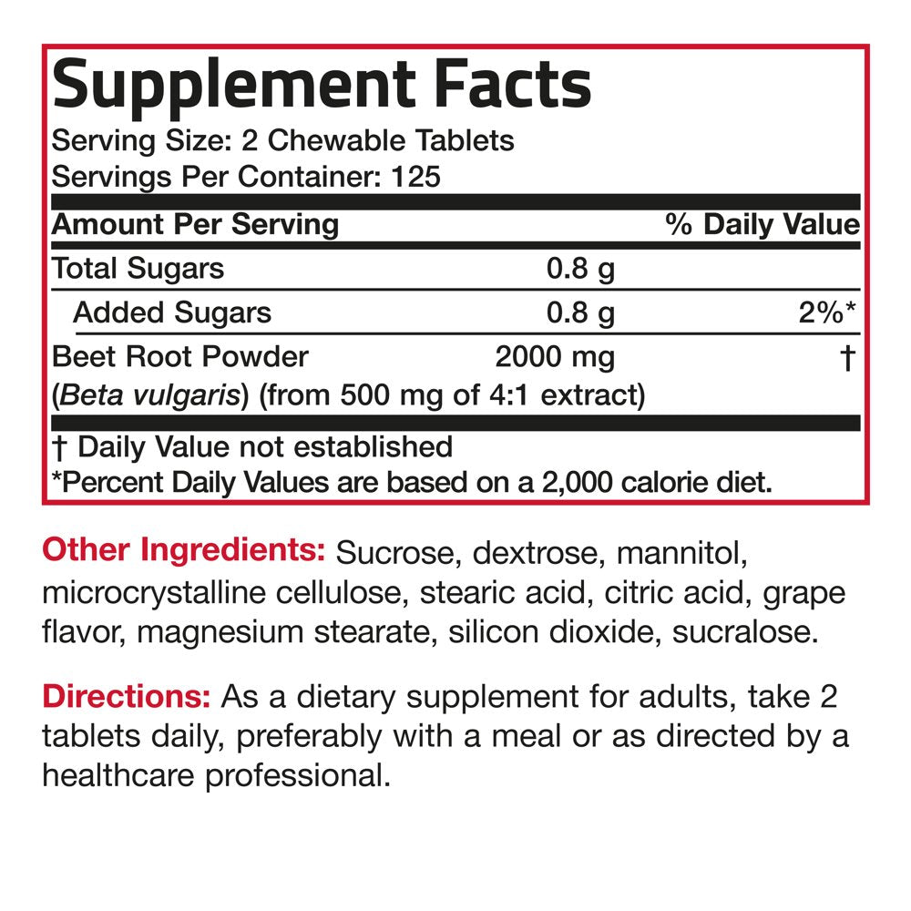Bronson Beet Root Chewables 2000 MG, Grape Flavored - Extra Strength 2000 MG per Serving Circulation Support Heart Health & Stamina, NON-GMO, 250 Vegetarian Grape Flavored Chewable Tablets is backordered and will ship as soon as it is back in stock.