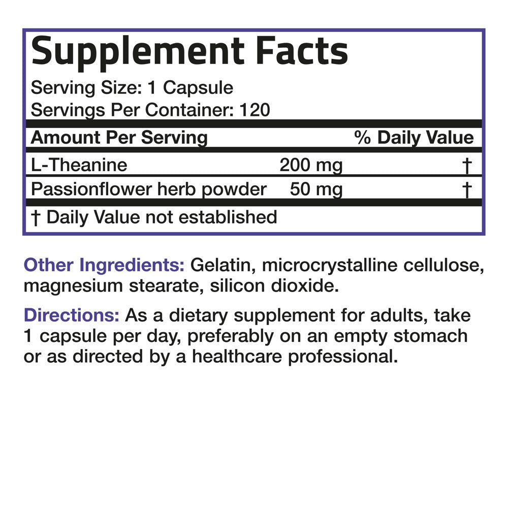 Bronson L-Theanine 200Mg (Double-Strength) with Passion Flower Herb - Reducing Stress - Non-Gmo Gluten Free, 120 Capsules