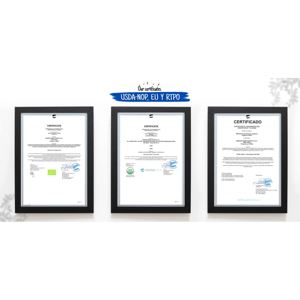 - ✅ CERTIFIED PRODUCTS: USDA NOP and EU organic certified by the Control union. We constantly try to adapt our products to be consumed worldwide. Therefore, we challenge ourselves and manage to obtain new certifications.