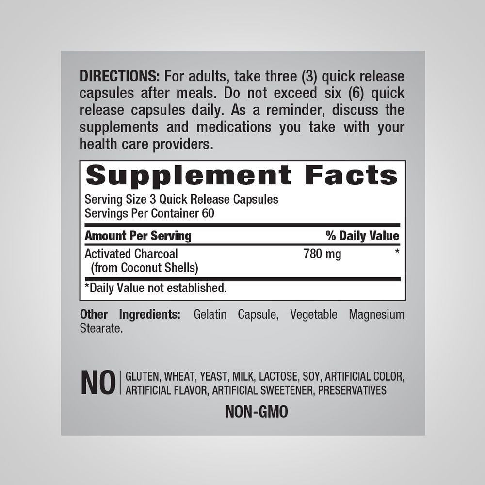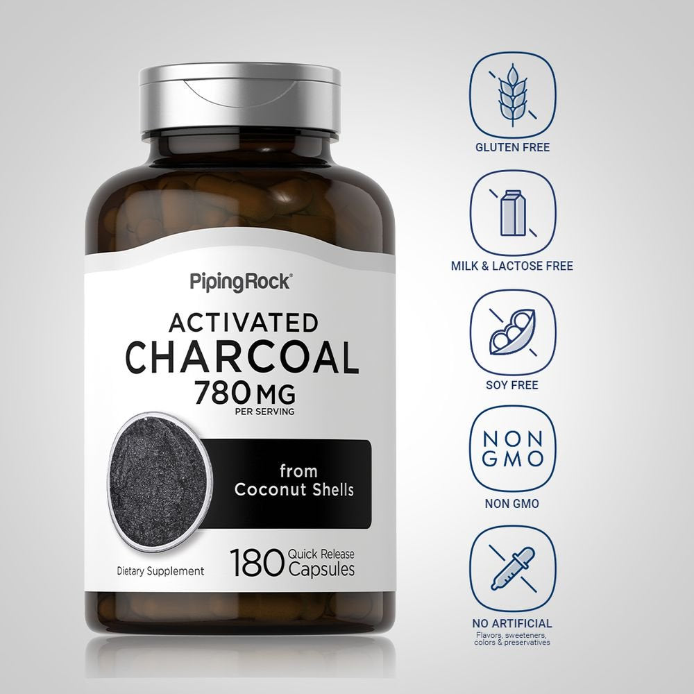 Charcoal Pills 780Mg | 180 Capsules | Activated Charcoal from Coconut Shells | Non-Gmo, Gluten Free Supplement | by Piping Rock