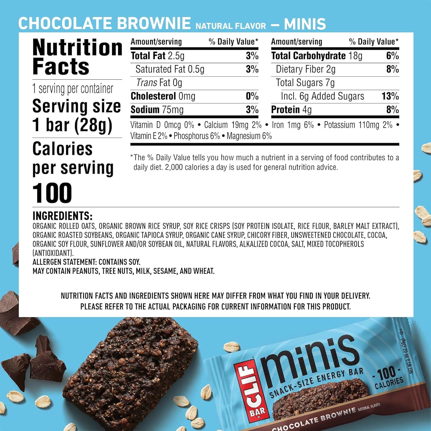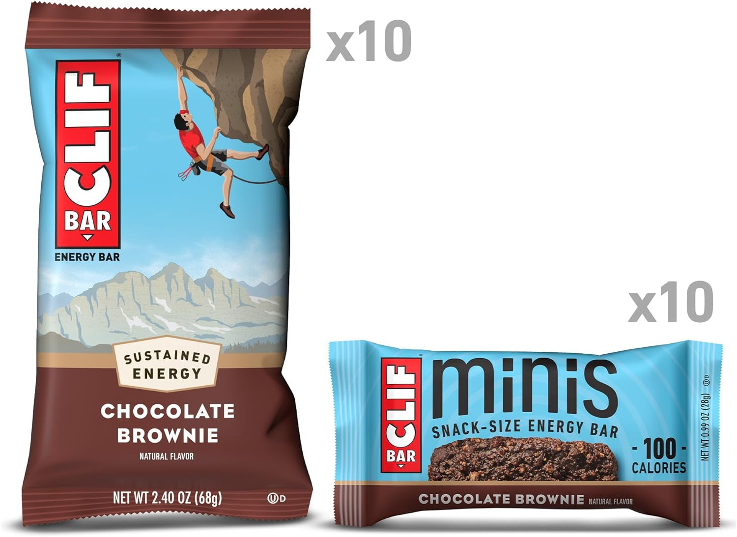 - FULL SIZE AND MINI VALUE PACK: Includes a mix of 10 regular size CLIF BAR and 10 CLIF BAR Minis all in your favorite Chocolate Brownie Flavor (packaging and assortment may vary)