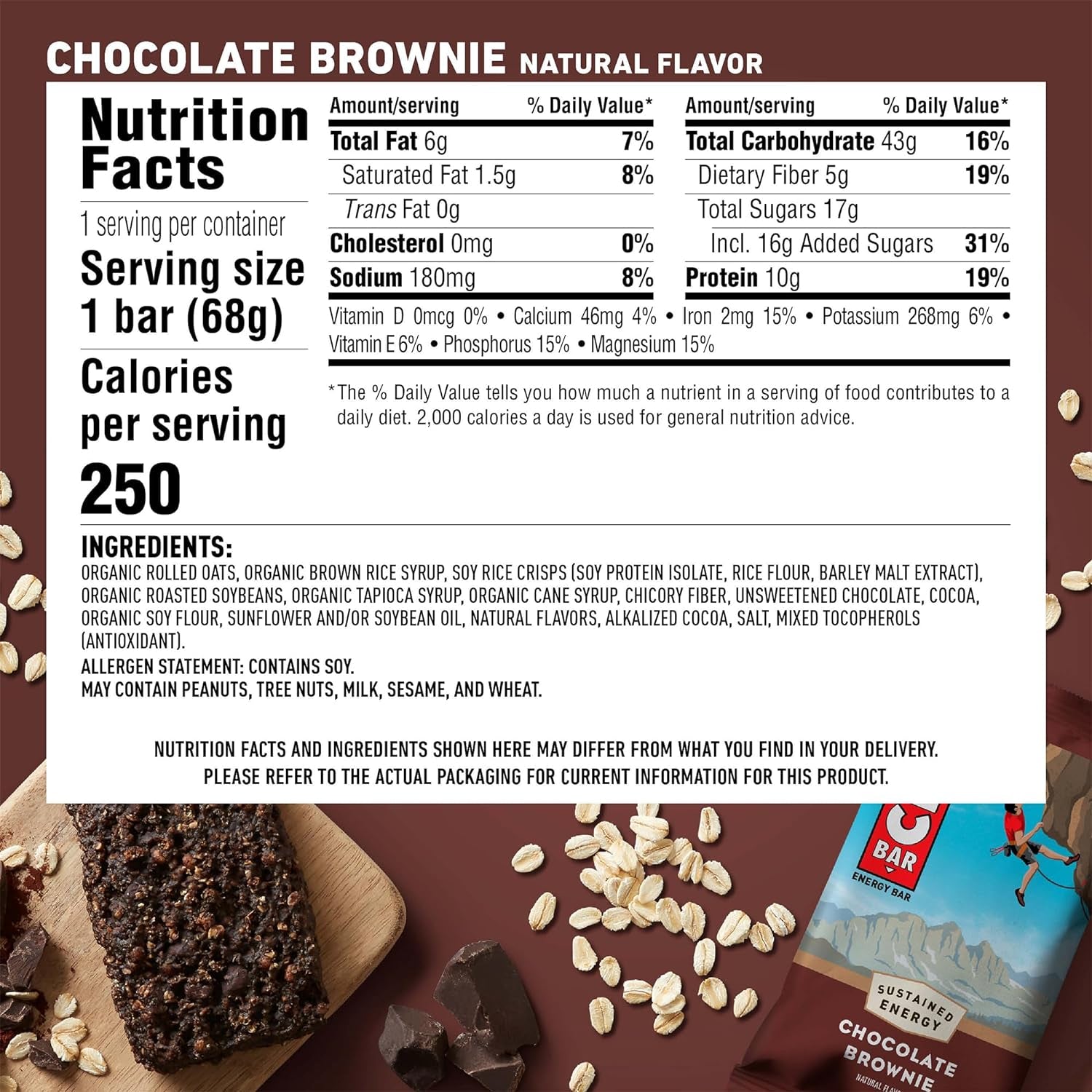 CLIF BAR - Chocolate Brownie Flavor - Made with Organic Oats - 10G Protein - Non-Gmo - Plant Based - Energy Bars - 2.4 Oz. (12 Pack)