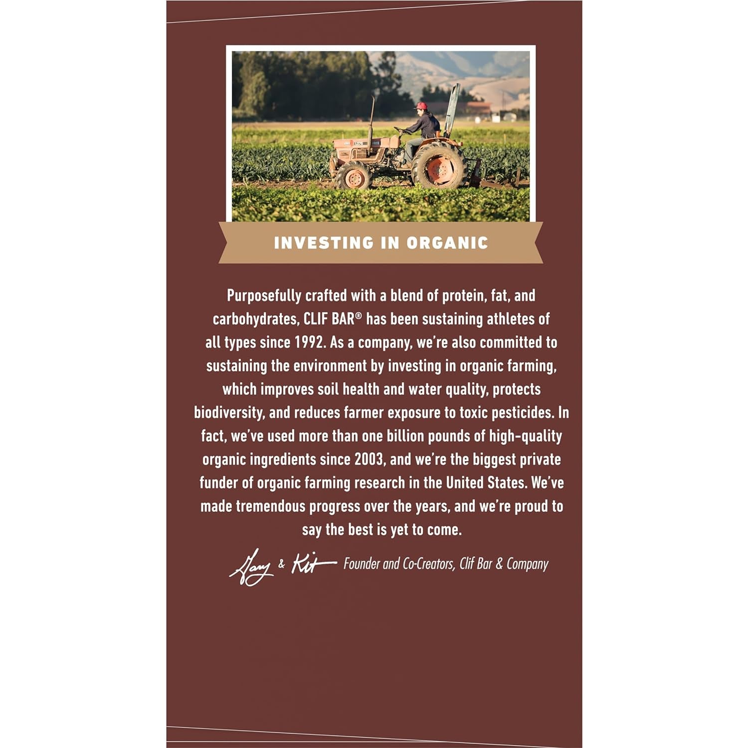 Born on a 175-mile bike ride and made with great-tasting and sustainably sourced whole food ingredients like organic rolled oats, CLIF BAR Energy Bars were crafted to sustain active bodies before and during long-lasting activity. Today, CLIF BAR remains the Ultimate Energy Bar. As part of Clif Bar & Company’s commitment to making products that are friendly to people and the environment, we use 100% renewable energy*, zero waste certified bakeries, and strive to be climate positive by 2030. We have also signed The Climate Pledge and are committed to be carbon neutral by 2040. CLIF BAR energy bars are non-GMO, Kosher, and plant-based with no high-fructose corn syrup or artificial flavors. *Including the purchase of renewable energy credits.
