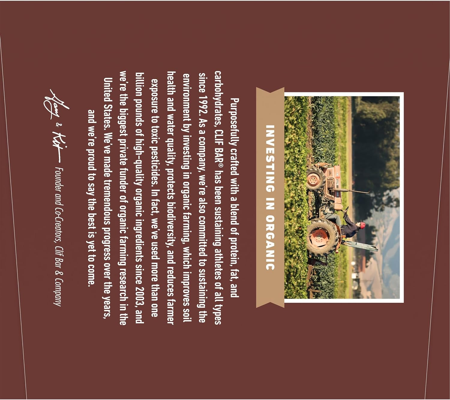 Born on a 175-mile bike ride and made with great-tasting and sustainably sourced whole food ingredients like organic rolled oats, CLIF BAR Energy Bars were crafted to sustain active bodies before and during long-lasting activity. Today, CLIF BAR remains the Ultimate Energy Bar. As part of Clif Bar & Company’s commitment to making products that are friendly to people and the environment, we use 100% renewable energy*, zero waste certified bakeries, and strive to be climate positive by 2030. We have also signed The Climate Pledge and are committed to be carbon neutral by 2040. CLIF BAR energy bars are non-GMO, Kosher, and plant-based with no high-fructose corn syrup or artificial flavors. *Including the purchase of renewable energy credits.