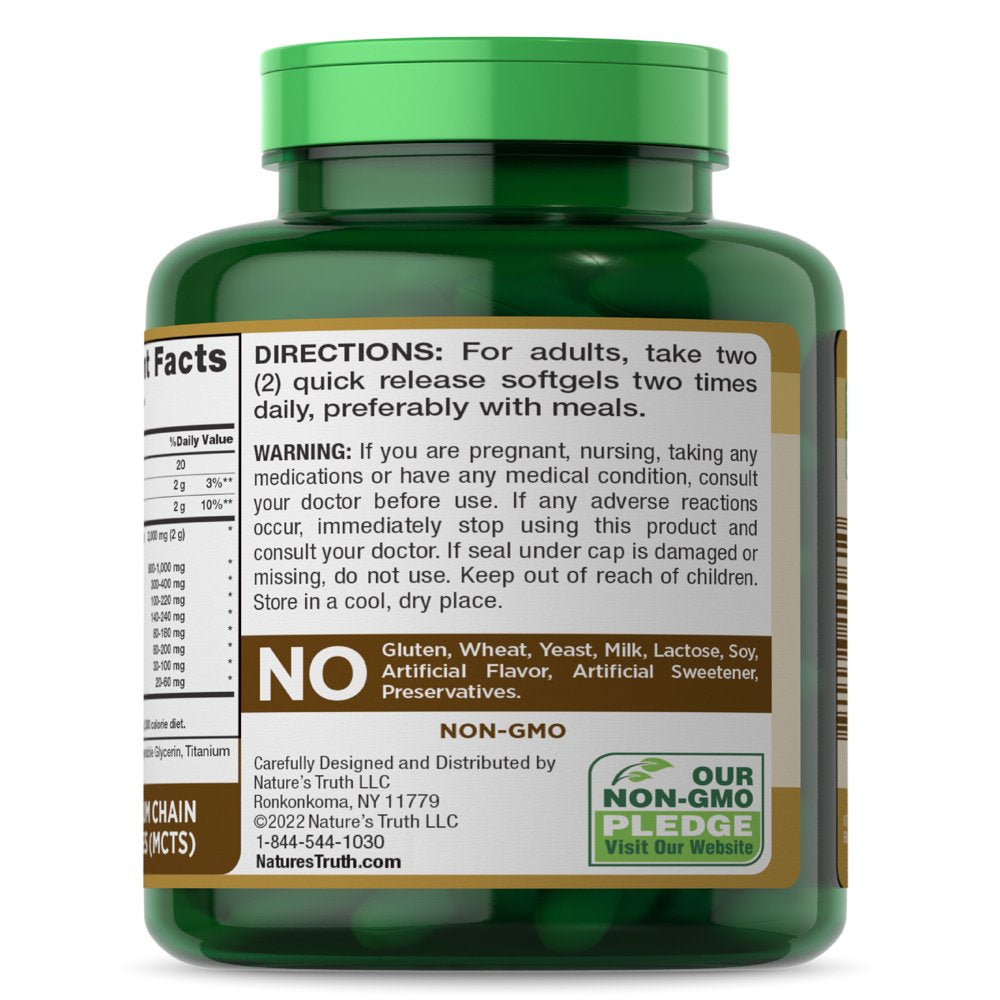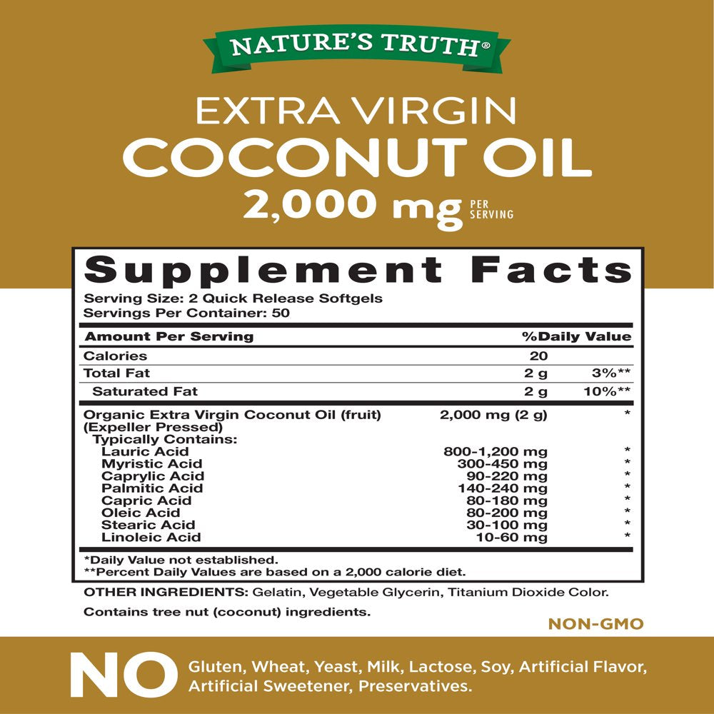 Coconut Oil Capsules 2000 Mg | 100 Softgels | Naturally Occuring Mcts | Non-Gmo & Gluten Free | by Nature'S Truth