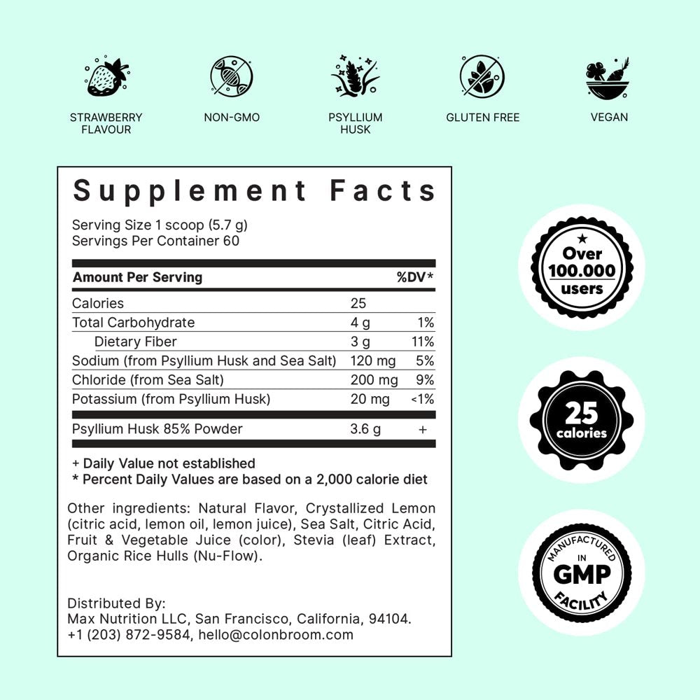 FORGET THESE so-called colon detox cleanses with inconsistent results. POOP LIKE A WINNER WITH our finely ground colon cleanse powder. Formulated with psyllium husk, a natural, plant-based, ESSENTIAL FIBER supplement, ColonBroom acts as a GENTLE, bulk-forming laxative that moves through you, SWEEPING IMPURITIES from your gut for a GI detox that may aid in DIGESTION, CONSTIPATION, blood sugar & WEIGHT REDUCTION.,FORGET THESE so-called colon detox cleanses with inconsistent results. POOP LIKE A WINNER WITH our finely ground colon cleanse powder. Formulated with psyllium husk, a natural, plant-based, ESSENTIAL FIBER supplement, ColonBroom acts as a GENTLE, bulk-forming laxative that moves through you, SWEEPING IMPURITIES from your gut for a GI detox that may aid in DIGESTION, CONSTIPATION, blood sugar & WEIGHT REDUCTION.,FEELING BLOATING IN YOUR gut? Excess belly weight? Embarrassing, inappropriate gas? (When is it ever appropriate...) ColonBroom Intestinal Cleanse helps you to CLEAN THAT SH*T OUT. It s unique complex of ingredients ASSISTS THE DETOX CLEANSE process. Along with a healthy gut diet, improved colon health may REDUCE BLOATING, BOOST HEALTHY METABOLISM, INCREASE ENERGY LEVELS and KEEP YOU REGULAR.,MORE EFFICIENT FAT-BURNING IS often a perk of a healthier gut. WHEN YOUR BODY S WORKING right, you FEEL YOUR BEST. You may experience lightness in your gut, regular bowel movements, healthy gut flora, AMAZING MOOD & ENERGY, & the ability to SHED THOSE LBS more quickly. Known as THE SECOND BRAIN, your gut AFFECTS OVERALL HEALTH. It s why ColonBroom was created. So you can be AWESOME inside & out.,SIMPLY TAKE A SPOONFUL of our bowel cleanse dissolved in water and ENJOY CHAMPION POOPS as you poop your way to a HEALTHIER GUT & METABOLISM. PLUS, the DELICIOUS STRAWBERRY TASTE of our body cleanse means you ll look forward to the sweet, refreshing flavor almost as much as the SATISFYING POOPS and gut cleanse afterwards. And you can drink with confidence knowing it s VEGAN, GLUTEN-FREE & NON-GMO.,WITH ColonBroom, SWEEP THAT SH*T RIGHT OUT of your colon. With over HAPPY CUSTOMERS, we can proudly say we ve helped cut the crap for countless people just like you. Thanks to BREAKTHROUGHS IN GASTROINTESTINAL SCIENCE, our NUTRITIONISTS developed a digestive health supplement helping thousands to POOP LIKE WINNERS. If you don t love your colon cleanse detox, REACH OUT, we ll make it right.