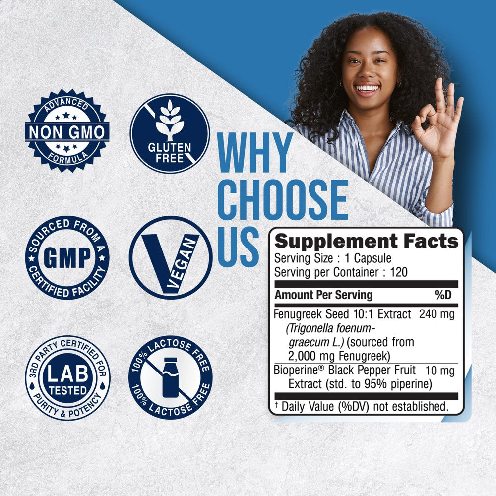 120 capsules / 120 count of Fenugreek with Bioperine per bottle