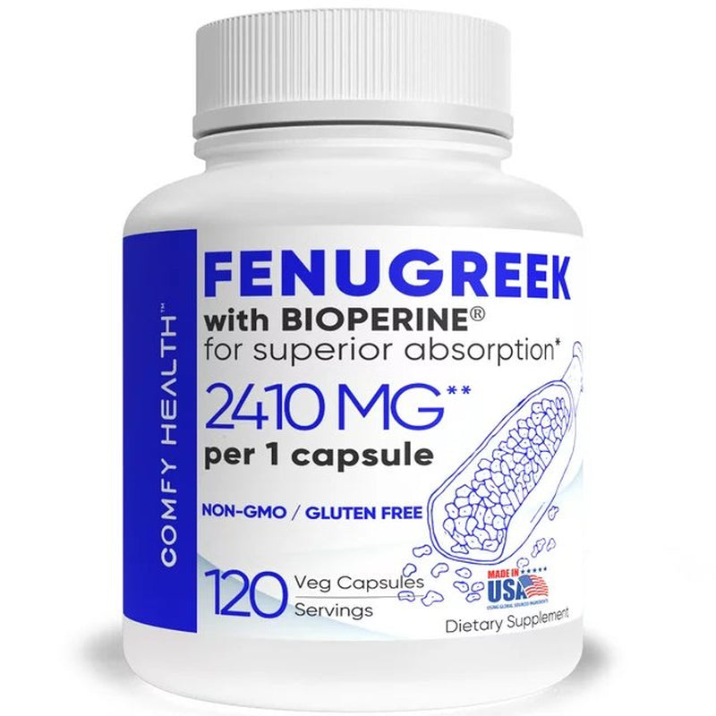 COMFY HEALTH Fenugreek Capsules, 2410Mg per Capsule, 120 Count, Fenugreek Pills with Bioperine for Superior Absorption, Non-Gmo, Gluten Free Fenugreek Seeds Extract Supplements, Fenogreco Capsulas