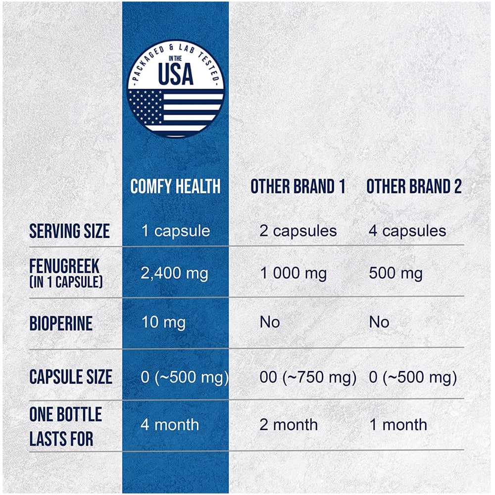 COMFY HEALTH Fenugreek Capsules, 2410Mg per Capsule, 360 Count, Fenugreek Pills with Bioperine for Superior Absorption, Non-Gmo, Gluten Free Fenugreek Seeds Extract Supplements, Fenogreco Capsulas is backordered and will ship as soon as it is back in stock.
