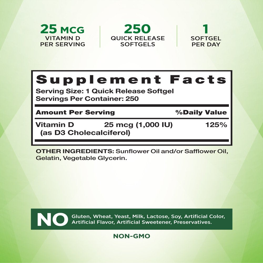 D3 1000 Iu 250 Softgels | Essential Vitamin D | Value Size | Non-Gmo, Gluten Free | by Nature'S Truth