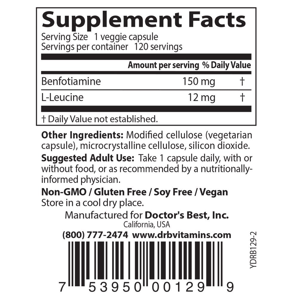 Doctor'S Best Benfotiamine with Benfopure, Non-Gmo, Gluten Free, Vegan, Helps Maintain Blood Sugar Levels, 150 Mg, 120 Veggie Caps