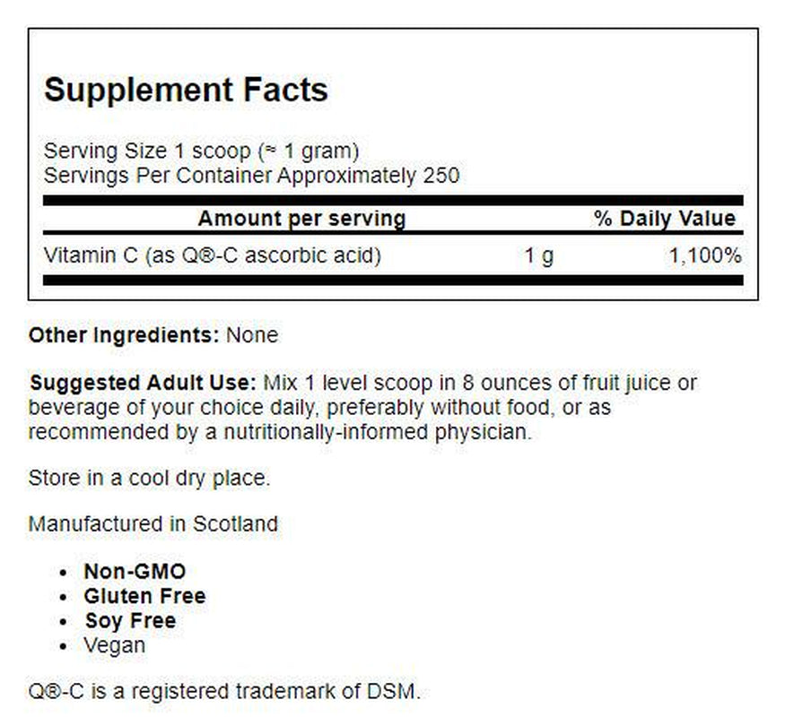 - Doctor's Best Pure Vitamin C contains Q-C Powder, 250G: