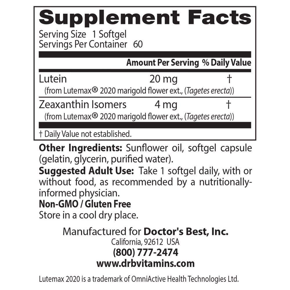 - Doctor's Best Lutein with Lutemax® 2020 20mg Softgels, 60 Count