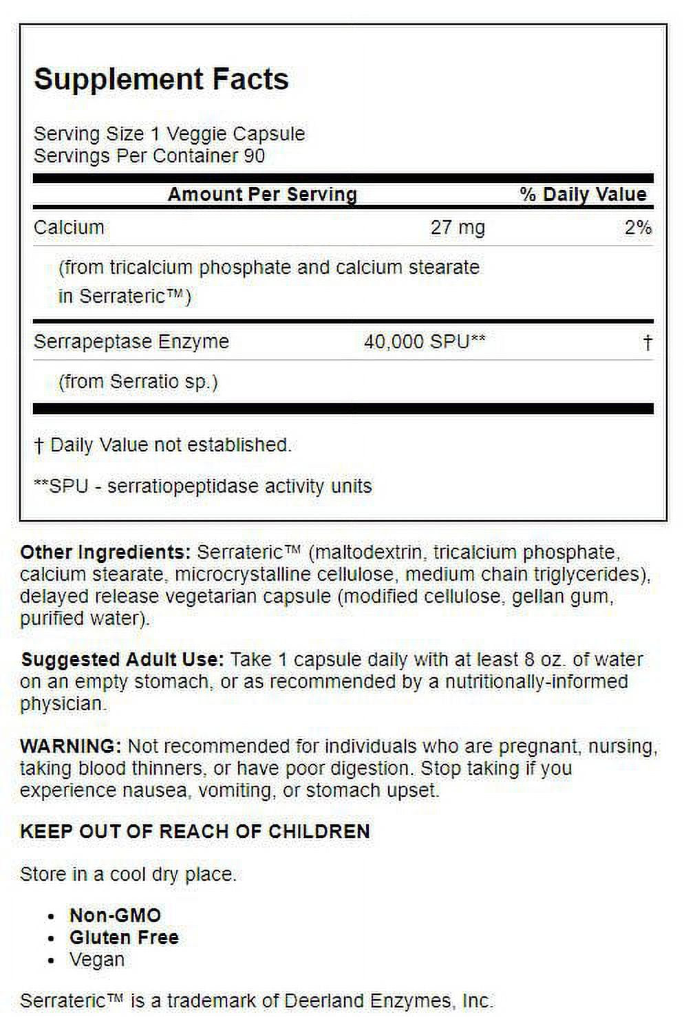 - Doctor's Best Serrapeptase 40,000 SPU is formulated with Serrateric™ Veggie Capsules, 90 Capsules: