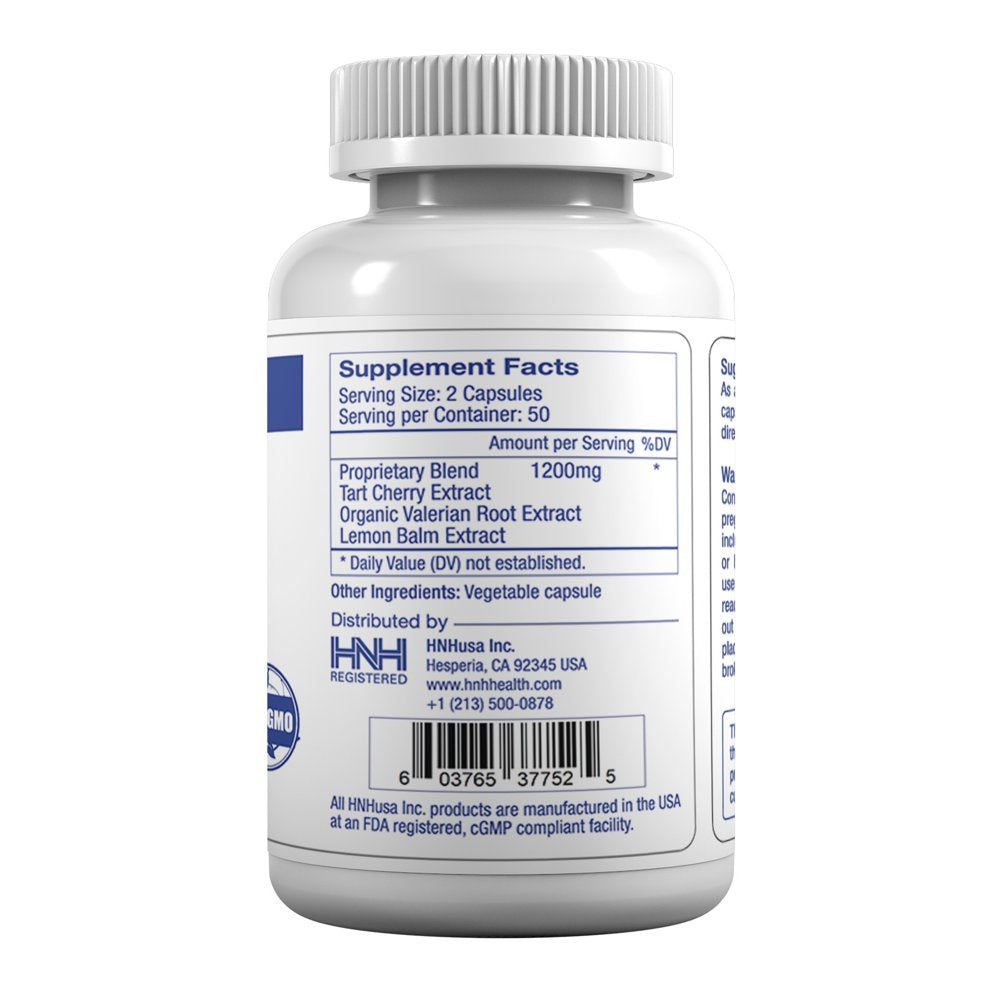 - Vegetable capsules: vegetarian friendly, easy to take, and no aftertaste, Non-GMO, Tart cherry extracts contain melatonin and may help restful sleep, Valerian root extract and lemon balm extract may help promote relaxation.