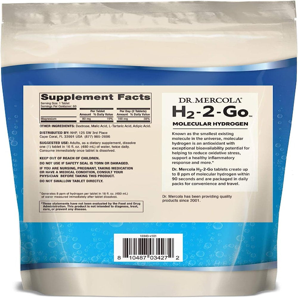 Dr. Mercola H2-2-Go Packets, up to 8Ppm of Molecular Hydrogen Gas*, Non GMO, Gluten Free, Soy Free