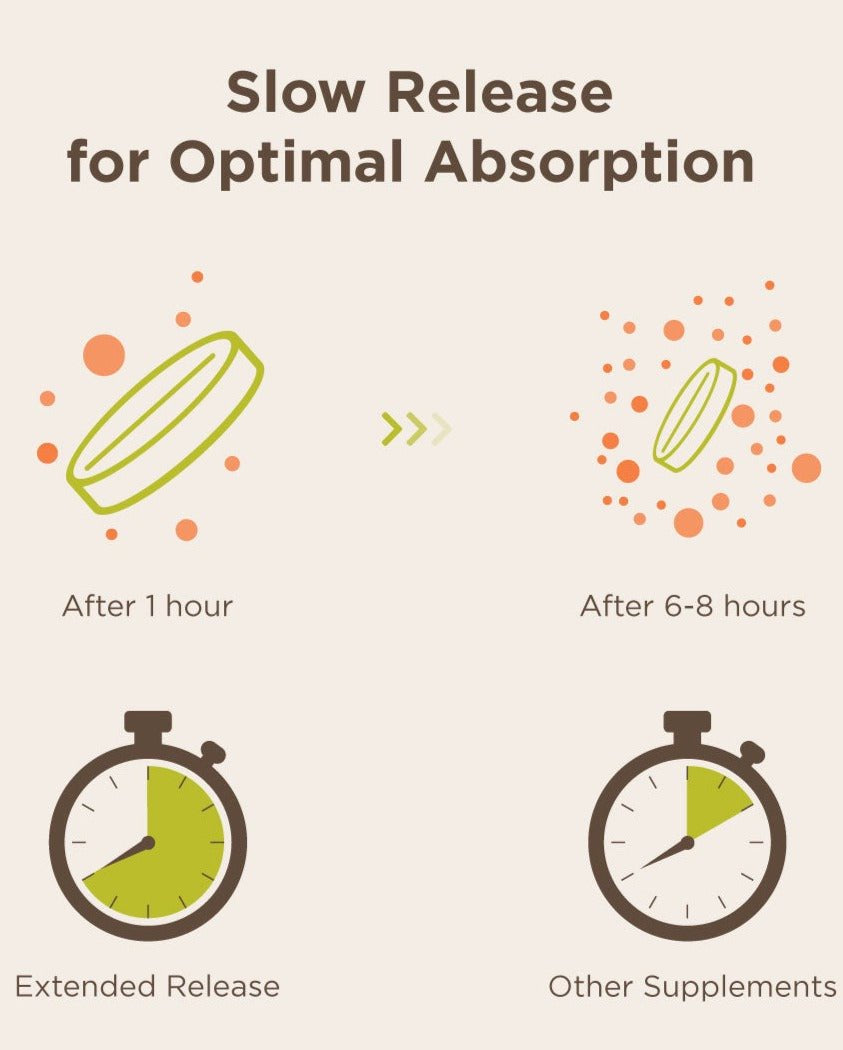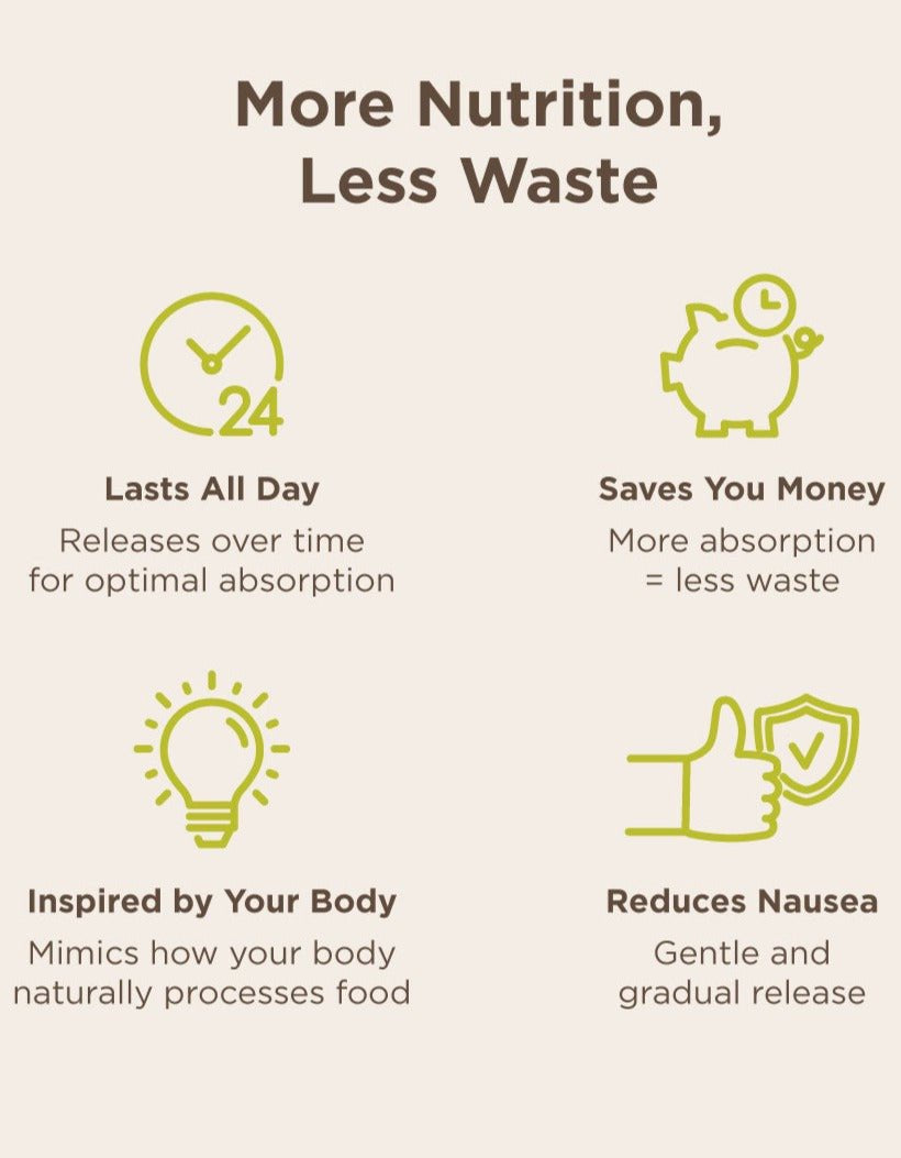- OPTIMAL ABSORPTION & MAXIMUM EFFECTIVENESS: The proprietary vegetable-based wax matrix melts at body temperature to slowly release nutrients over 6-8 hours, mimicking how your body processes food. This minimizes side effects and digestive upset.*