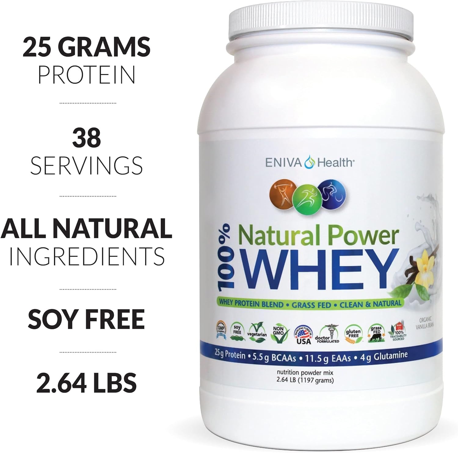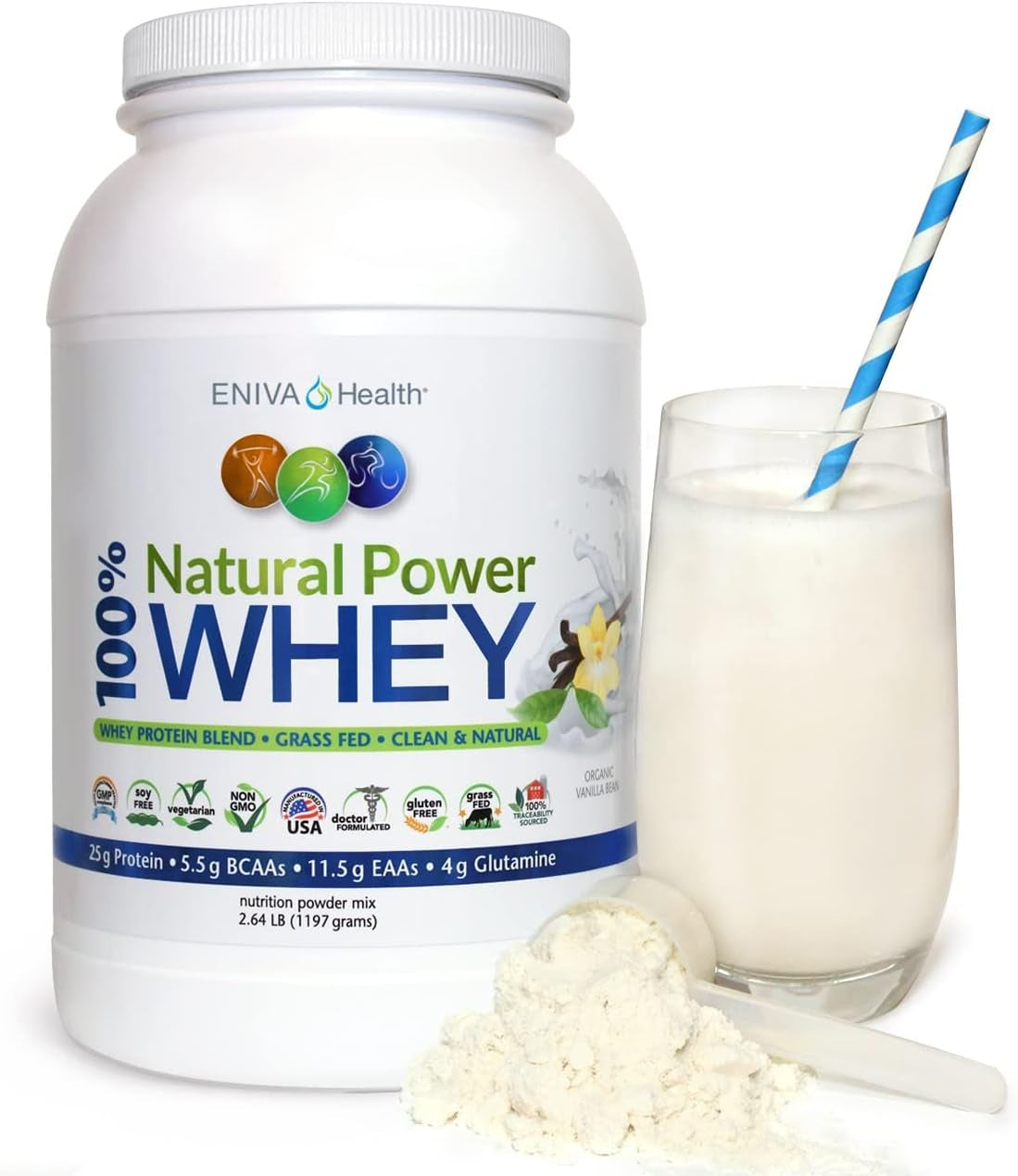 Eniva Health Natural Power Whey Protein Powder with natural vanilla flavor from vanilla bean is a top quality protein for game-changing performance.