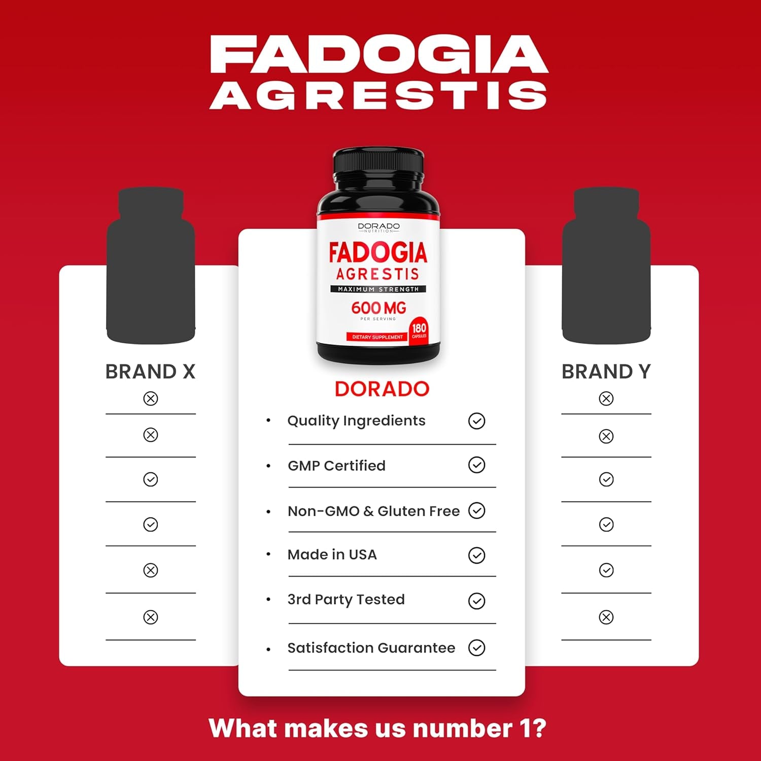 - STRONGEST FADOGIA AGRESTIS ON THE MARKET! - Extra Strength 600mg Fadogia Agrestis per Serving Size. 180 Vegan Capsules of Pure Fadogia Agrestis Per Bottle. Non-GMO, Gluten Free, Quality Guarantee.