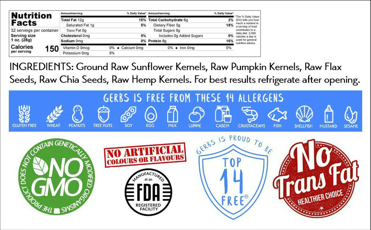 Ground Raw Pumpkin, Sunflower, Chia, Flax, Hemp Seed Meal by Gerbs - 2 LBS - Top 14 Food Allergen Free & NON GMO