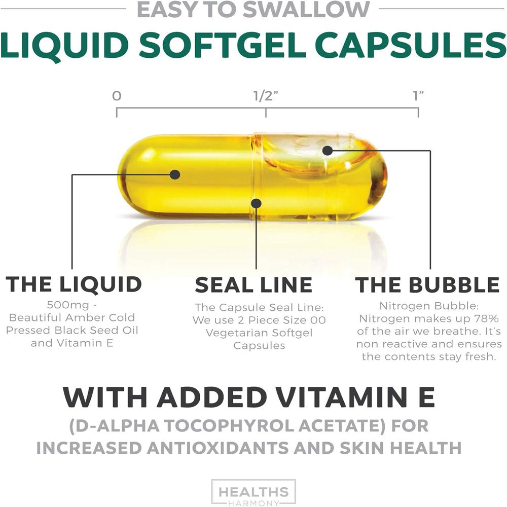 Healths Harmony Black Seed Oil 1000 Mg, 120Ct Softgel Capsules, NON-GMO & Vegan Supplement Made from Cold Pressed Nigella Sativa Pure Black Cumin Seed Oil