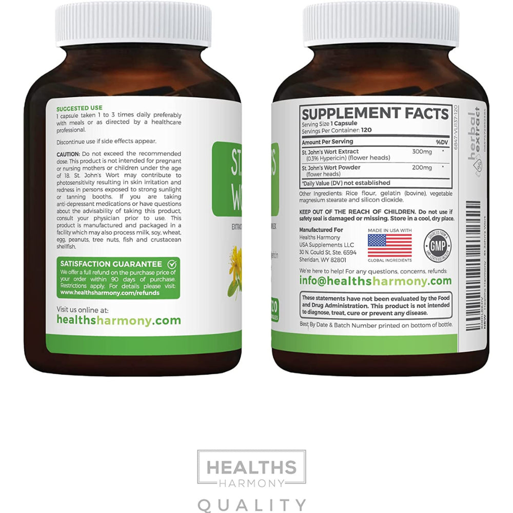 Product Name Healths Harmony St. John's Wort 500mg 120 Capsules (Non-GMO) Powerful 900mcg Hypericin Saint Johns Wort Extract for Mood, Tincture & Mental Health - No Oil or Pills - Supplement