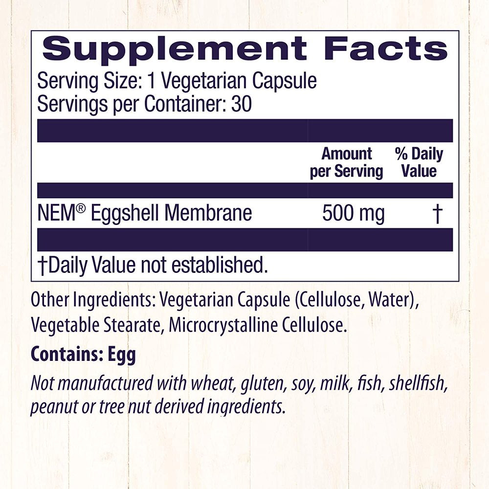 Healthy Origins Eggshell Membrane 500 Mg (NEM, Non-Gmo, Gluten Free, Joint Support), 30 Veggie Caps