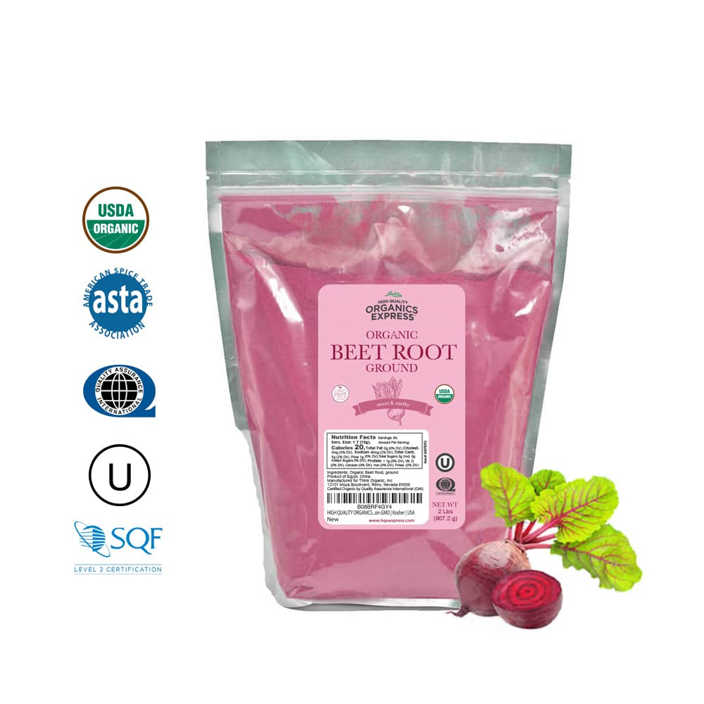 Hqoexpress Organic Beetroot Powder - Organic Superfood - Nitric Oxide Booster - Non-Gmo - Kosher - Sustainably Grown - 34Oz Chef Jar
