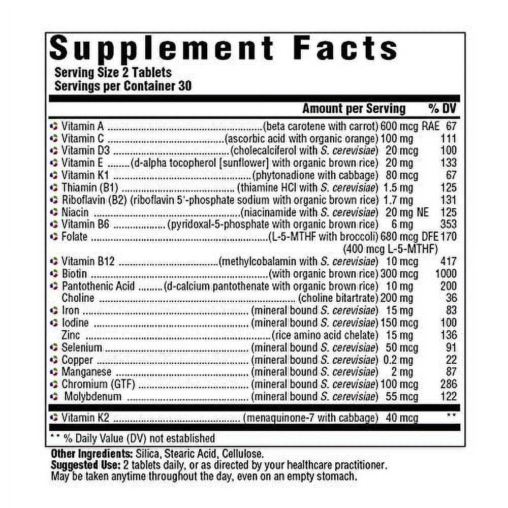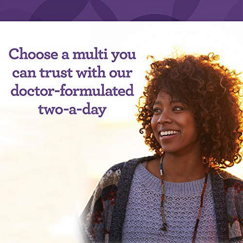 - Multi Made For Women: Choose nutrition and optimal health with a doctor formulated, two-a-day multivitamin to support your well-being - Invest In Wellness: Supports cellular energy with B vitamins 800 IU of vitamin D3 promotes bone health Choline supports memory and cognition 15 mg of iron to replenish levels lost during menstruation - Two Tablets: Take daily, anytime throughout the day, even on an empty stomach Includes methylated folate and B12, plus active vitamin B - Quality Assured: Non-GMO, vegetarian, Certified Glyphosate Residue Free, tested for 125+ herbicides and pesticides, kosher, free of gluten, dairy and soy, Certified B Corp - Where Nature And Science Meet: Wellness is our natural state that���s why we take a wholistic approach to health by crafting supplements to support your body���s needs