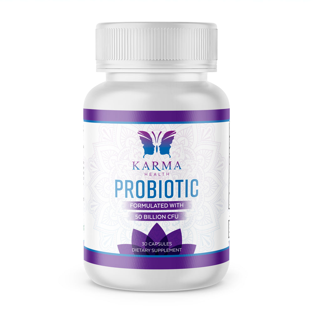 Karma Health Probiotic Formulated with 50 Billion CFU - Fiber Supplement - Digestive Enzymes - 1 Month Supply - for Men & Women - Vegan - GMO Free - Made in USA in FDA Supervised Facility - 5 Pack
