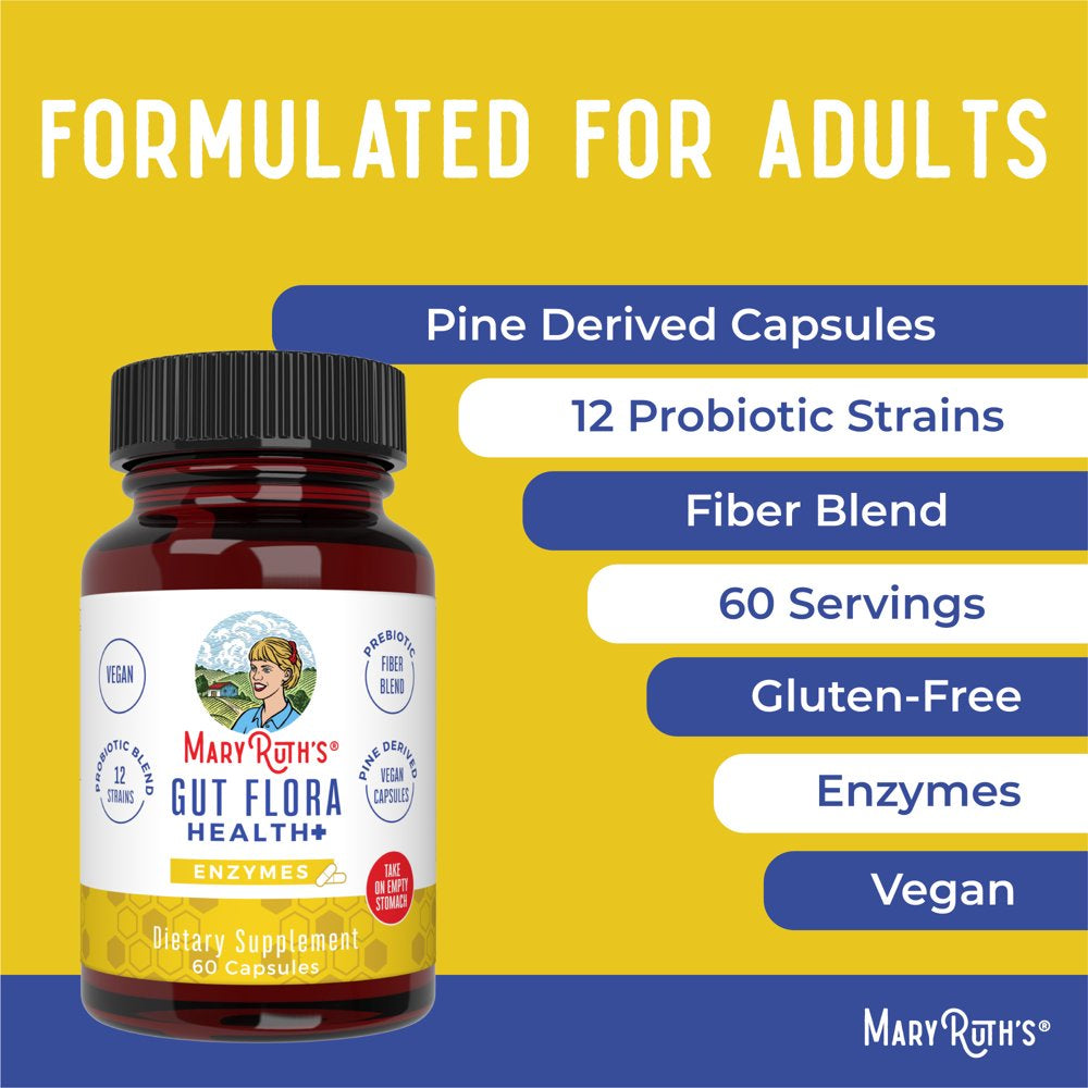 Maryruth Organics | Gut Flora Health+ Enzymes | Vegan, Non-Gmo | 60 Count is backordered and will ship as soon as it is back in stock.