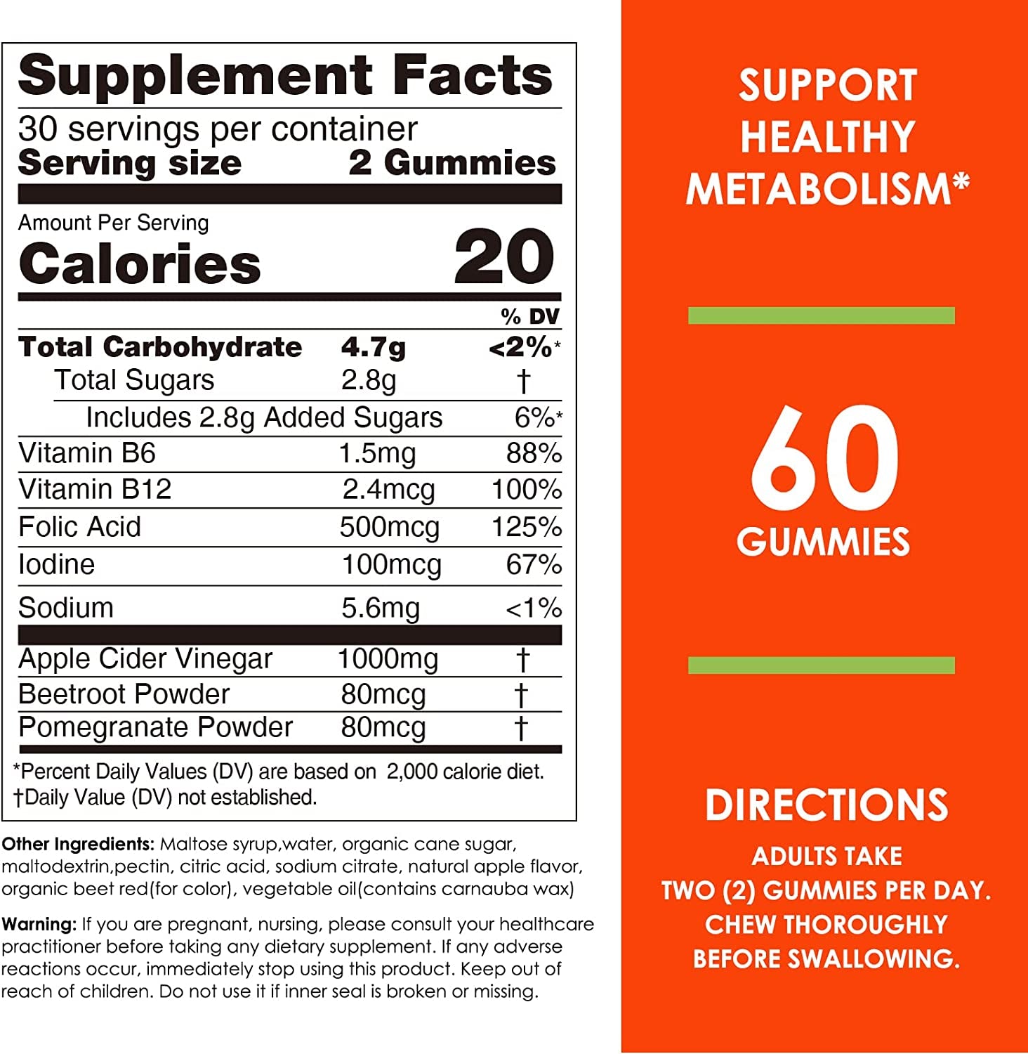 Nature‘s Key apple cider vinegar gummies formula with Vitamin B12, B6, Folic Acid, Pomegranate Powder and Beetroot Powder. This contributes to the normal function of the immune system, supports weight management and detox*