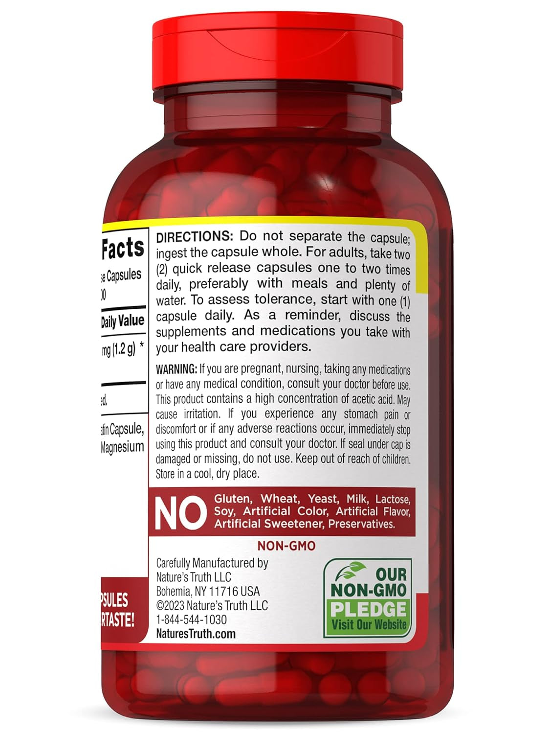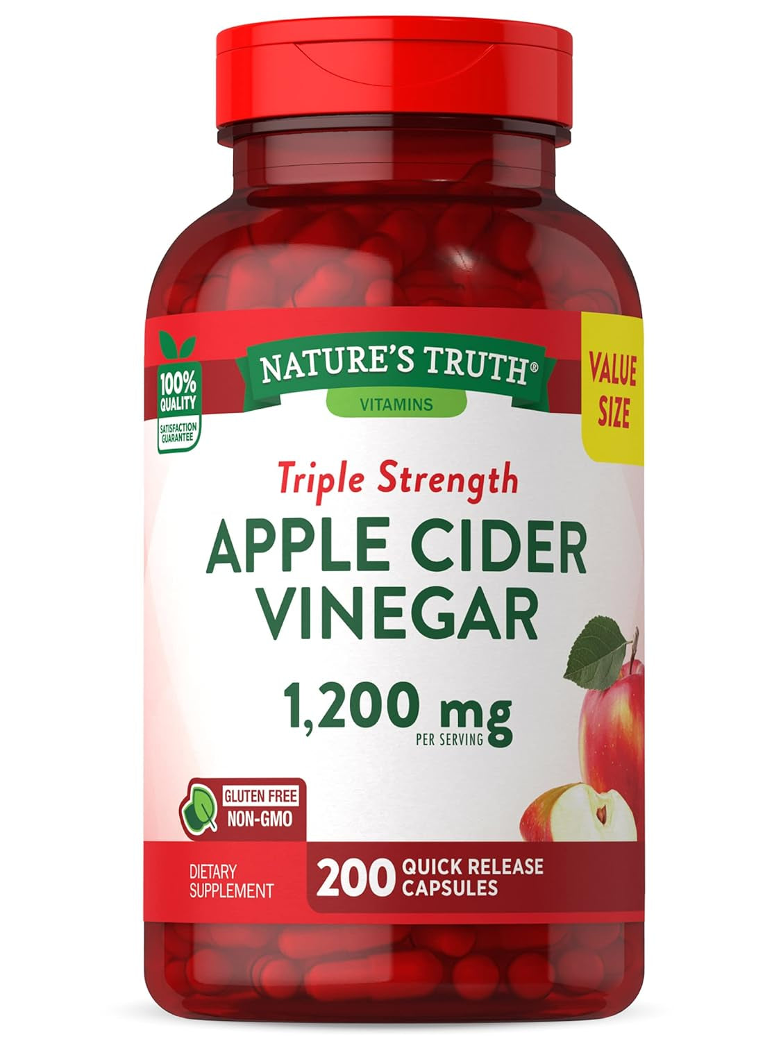 Nature'S Truth Apple Cider Vinegar Capsules | 1200Mg | 200 Pills | Extra Strength | Value Size | Non-Gmo, Gluten Free Supplement