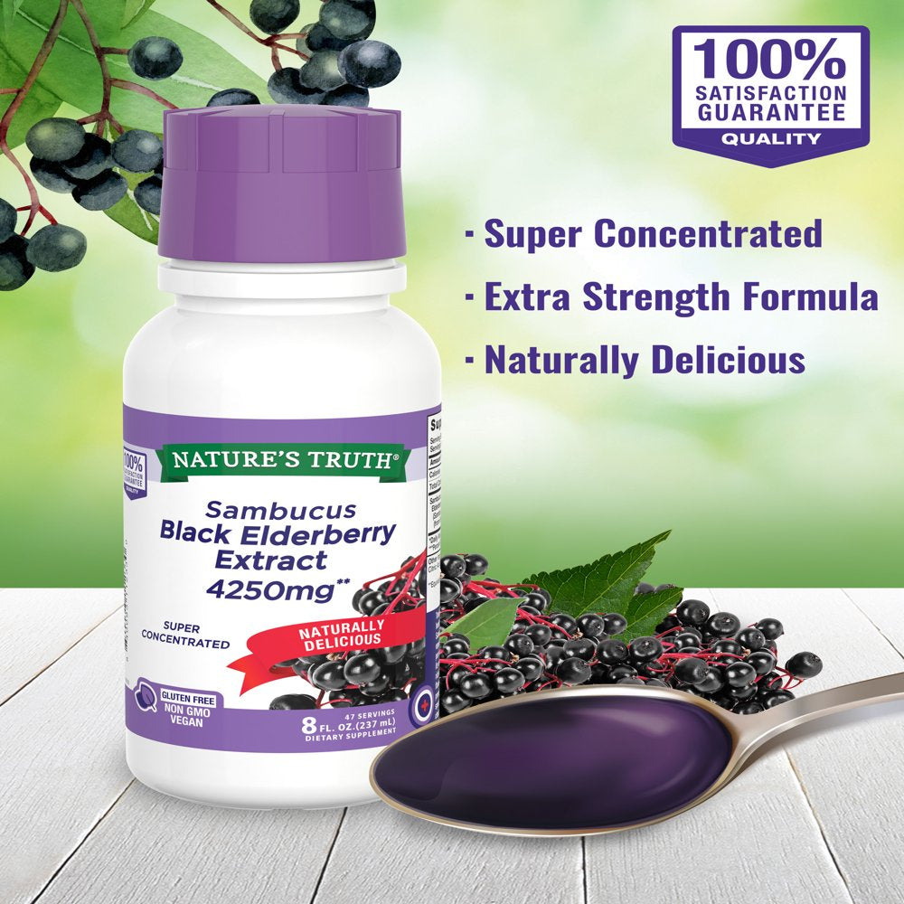 Nature'S Truth Black Elderberry Extract 4250Mg | 8 Oz Syrup | Super Concentrated Sambucus Supplement | Vegan, Non-Gmo, Gluten Free