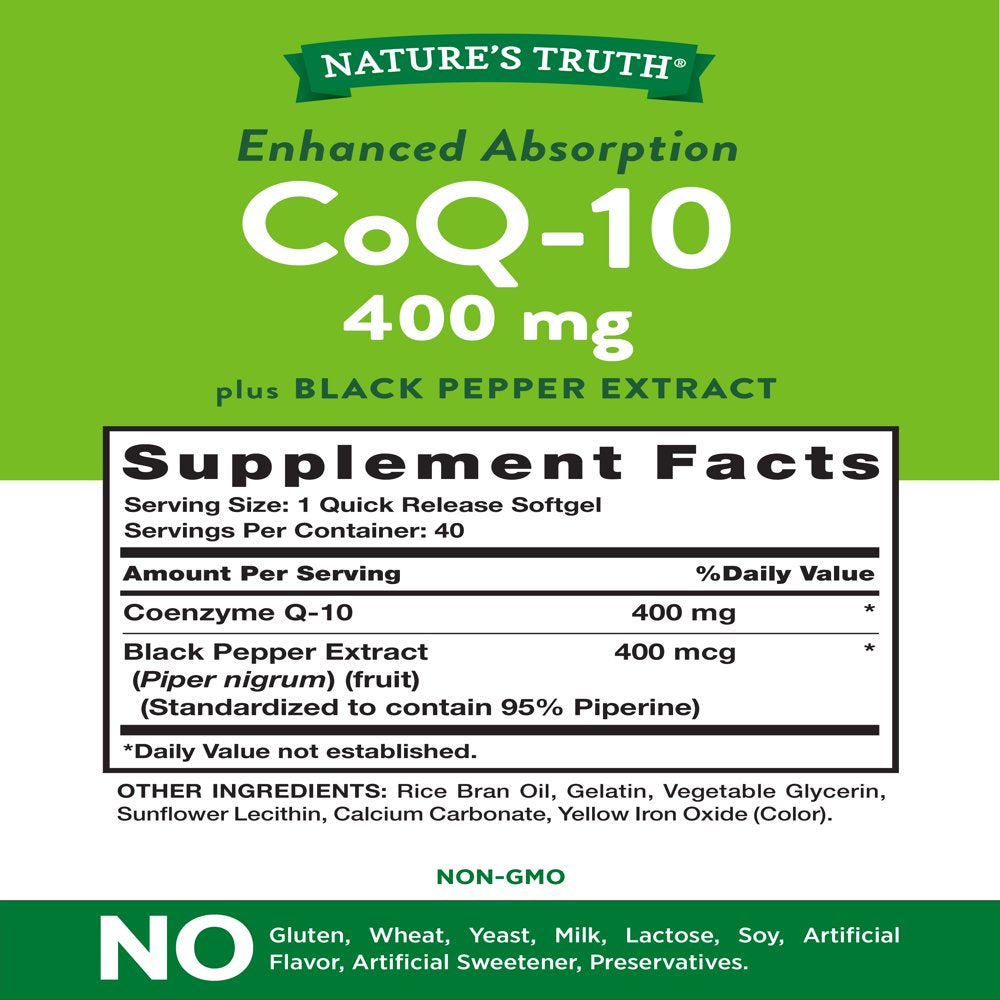 Nature'S Truth Coqq10 400Mg | 40 Softgels | Maximum Strength Supplement | Enhanced Absorbtion | Non-Gmo, Gluten Free