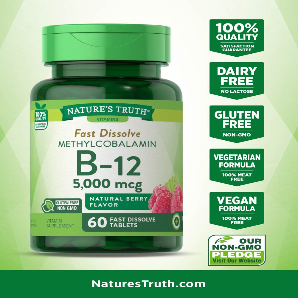 Nature'S Truth Vitamin B12 5000 Mcg | 60 Tablets | Fast Dissolve Natural Berry Flavor | Vegetarian, Non-Gmo & Gluten Free