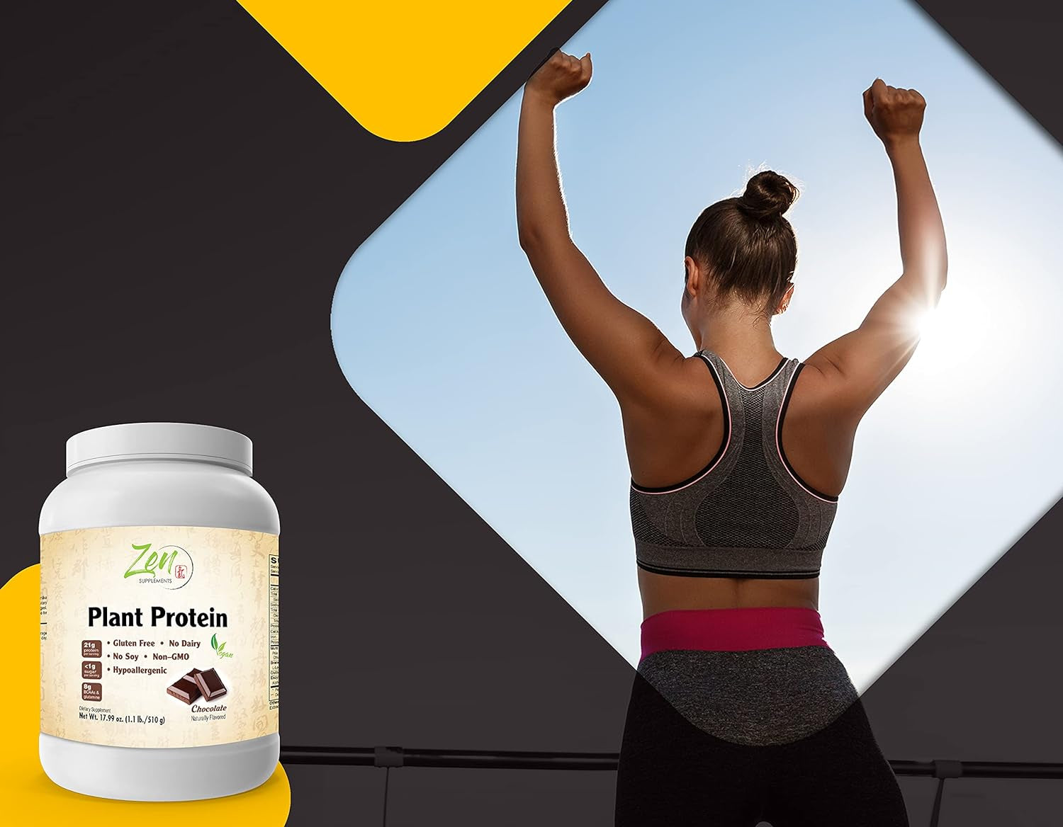 Zen Supplements - Plant Protein-Chocolate 510G 1.1LB -Powder - 23 Grams of Protein Per Serving -Vegan, Low Net Carbs, Non Dairy, Gluten Free, Lactose Free, No Sugar Added, Soy Free, Kosher, Non-GMO