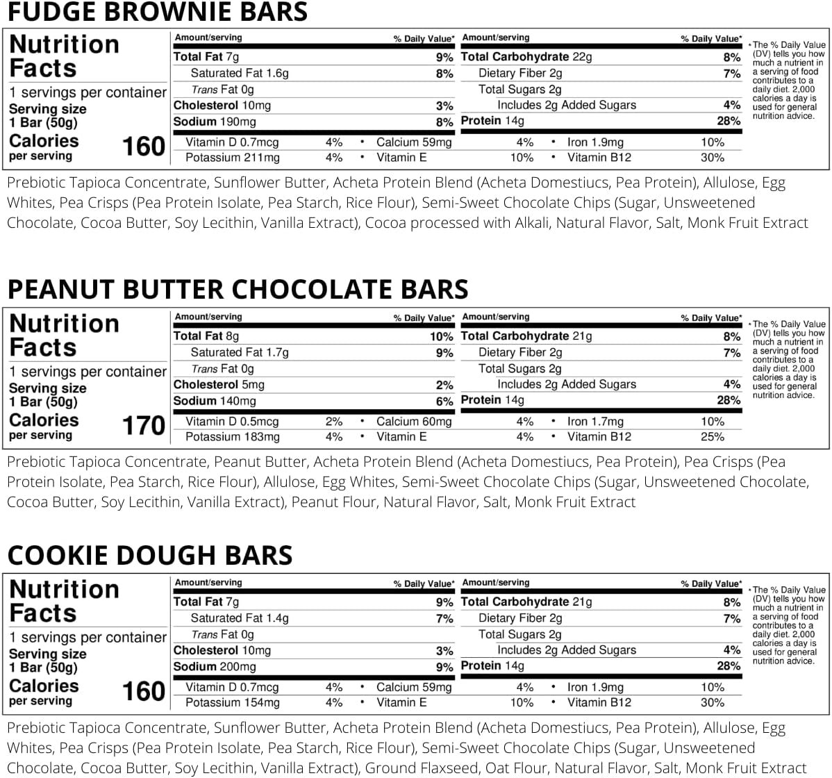 - DELICIOUS: Take a dessert flavored tour with our best selling prebiotic protein bars. Chocolate on Chocolate Fudge Brownie Bars, like fresh batter Cookie Dough Bars, and the classic combo Peanut Butter Chocolate Bars.