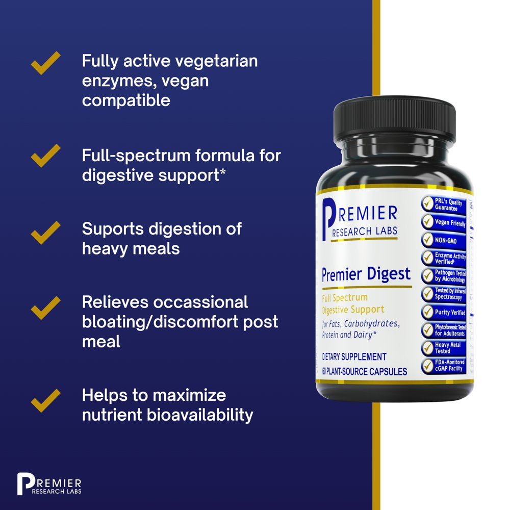 Premier Research Labs Digest - Full-Spectrum Formula to Support Digestive System - Gluten-Free, Non-Gmo, Vegan - 60 Plant-Source Capsules