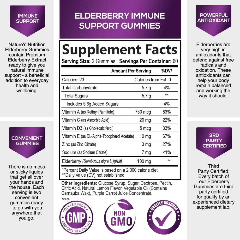 • Elderberry Gummies for Adults: Nature's Nutrition Elderberry Gummies are made with Zinc and Vitamin C and highly concentrated