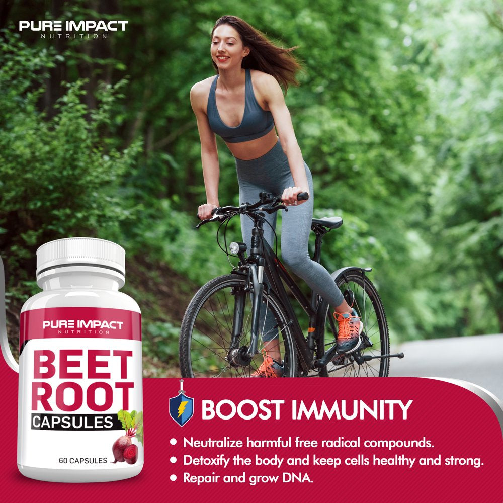 Pure Impact Nutrition Beet Root Capsules Nitric Oxide | Non-Gmo Beet Root Extract 1000Mg Beet Supplement | 60 Beet Capsules | Beetroot Supplement Capsules